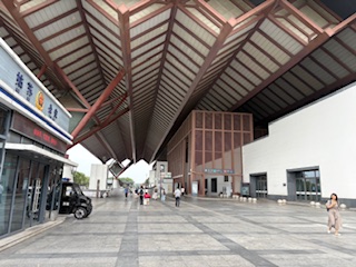 Schon am Vorplatz des Bahnhofs wurden wir von der Dimension überrascht. Monumental groß, und im Hintergrund die imposante historische Stadtmauer von Suzhou. Der Ablauf erinnert stark an einen Flughafen: • Passkontrolle, da unser Ticket über den Reisepass gebucht war • Sicherheitskontrolle, wie man sie sonst nur beim Fliegen kennt • riesige Wartehallen, in denen sich die Reisenden sammeln