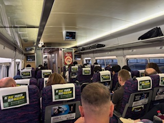 Unser Zug erreichte eine Geschwindigkeit von 297 km/h – beeindruckend, wie ruhig und effizient die Fahrt dennoch verlief. Ebenso faszinierend ist die Präzision: Der Zug hält auf den Meter genau am vorgesehenen Platz. Deshalb sind auf dem Bahnsteig die Wagennummern und Türbereiche markiert. Die Passagiere stellen sich entsprechend in Reih und Glied auf und steigen geordnet ein.